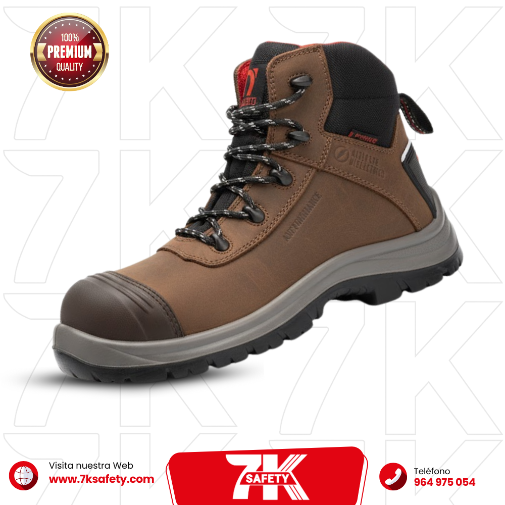 Fabricado con cuero flor natural de alta resistencia, combina tecnología de seguridad avanzada con un diseño ergonómico y moderno, ideal para uso diario en faenas, talleres, plantas industriales y almacenes.